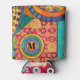 Modern Abstract Patchwork Pattern Monogram Can Cooler