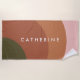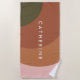 Make a statement at the beach or pool with this modern abstract personalized towel featuring warm terracotta, blush pink, and olive green geometric shapes. The clean minimalist design and bold name lettering create a chic, custom look perfect for any summer adventure.