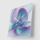 Modern Abstract Pink Blue Turquoise Fractal Art Square Wall Clock