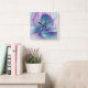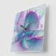 Modern Abstract Pink Blue Turquoise Fractal Art Square Wall Clock