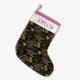 Modern Abstract Pink One line art Shapes Pattern Photo Christmas Stocking. One line shapes in pink and beige on black background. Festive and modern holiday design. Add your name.