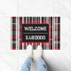 Modern Abstract Red Black Plaid Collection Doormat