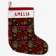 Modern Abstract Red One line art Shapes Pattern Photo Christmas Stocking. One line shapes in red, pink and beige on black background. Festive and modern holiday design. Add your name.