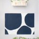 Add this bold, contemporary, rug to your home. It features a navy blue, white, and black design that includes organic shapes and dots. Simply add this rug to your cart, get it home, then enjoy in your space.