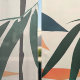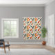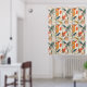 This stunning curtain panel features a pattern of watercolor modern geometric and leaf shapes. Predominant colors used are blue green, gold orange on a cream background. These curtains will make a statement in many rooms in the house, including a kitchen, bedroom, den or living room.