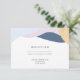 This chic and modern wedding reception card features a white background with abstract shapes in light mauve pink, faux gold, navy blue, and light blue. The reverse side features pink beige background. Personalize it for your needs. You can find matching products at my store.
