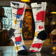 Elevate your style with these modern abstract socks, featuring bold brushstrokes in red, blue, yellow, and black against a cream background. The structured geometric grid adds a contemporary touch to the vibrant, artistic design. Perfect for art enthusiasts and fashion lovers, these socks bring a creative flair to any outfit.