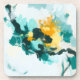 Modern Abstract Teal and Yellow Painted Design Beverage Coaster