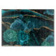 Cutting board, featuring a a modern abstract teal roses and gold glitter design.