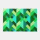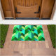 Doormat in a Mid-Century Modern design of layered triangles in shades of deep emerald green, lime, aqua, teal, and turquoise