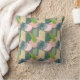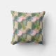 modern and trendy abstract tropical foliage throw pillow pattern that features a variety of pastel shapes, tropical leaves and fronds, on a medium gray background.