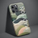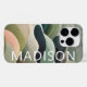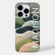 Modern Abstract Wavy Pattern Personalized Name iPhone 14 Pro Phone Cases features an abstract wavy pattern in gray, green and pink with your personalized name in white modern script typography. Perfect for personalized Christmas gifts and winter holidays. Designed by © Evco Studio www.zazzle.com/store/evcostudio