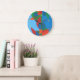 This functional art piece blends music and modern abstraction. A treble clef motif emerges through bold strokes of red, blue, and green, set within the structure of a clock. The composition celebrates rhythm, creativity, and the visual language of sound, transforming time into a musical statement.