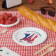 Modern patriotic ADDICTED TO PARIS Monogram party paper plates, with the map outline of France in the TRICOLORE flag of FRANCE. Curved at the top, the text reads ADDICTED TO PARIS. Taking pride of place is a graphic of the Eiffel Tower (Tour Eiffel) and there are groups of red hearts. The curved heading on these patriotic Paris Lover paper plates is CUSTOMIZABLE, so you can replace with your own preferred greeting or delete. There is also a CUSTOMIZABLE MONOGRAM in the bottom right hand corner. You can choose the background color of these Parisian paper plates from the options available.