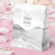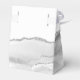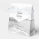 This elegant modern favor box features a gray and white watercolor agate design trimmed with silver faux glitter. Personalize it with the names of the couple in charcoal gray handwriting script over a large pale gray ampersand on a white background, along with the wedding date below.