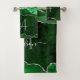 Modern Agate Geode Green Silver Monogram Script Bath Towel Set