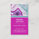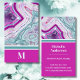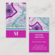 Chic Modern Monogram Initial Teal Magenta Stone Business Card. Agate crystals and geodes continue to be a favorite trend! This print features and up close image of a teal or turquoise and purple or magenta pink geode stone, complete with little crystals and white banding. Accented with vibrant color blocking to give it a modern and trendy look. Add your initial to make it your own.