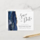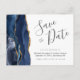 Modern Agate Navy Blue Gold Save the Date Announcement Postcard