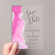 This elegant modern save the date card features a pink watercolor agate border trimmed with faux silver foil. The customizable text is charcoal gray on a white background. The reverse side features a matching pink and silver agate design.