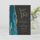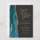 Modern Agate Teal Gold Dark Wedding Save the Date Invitation