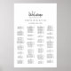 This modern alphabetical seating chart is perfect for a rustic wedding. The simple and elegant design features classic and fancy script typography in black and white. This sign can be used to organize your guests alphabetically or by table number. It includes enough room for about 150 wedding guests. Make room for more (or less) by clicking the customize button and increase or decrease the size of the font. Personalize this sign with the names of the bride and groom and the date.