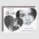 Funeral 'Always in our hearts' car magnet the perfect tribute to your love one in black and white, perfect for funeral memorial drive bys and for funeral procession cars. Featuring the saying 'ALWAYS IN OUR HEARTS' 2 photos in the shape of hearts, their name, birth/death dates. Background color can be changed by clicking on the customize further link after personalizing.