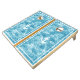 Natural Wood Cornhole Set, Royal Blue and Yellow bags