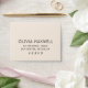 Custom A2 wedding RSVP / response card envelopes feature chic wedding return address custom text that can be personalized and a black and beige / warm white color scheme. A pattern of black and beige horizontal stripes dresses up the inside of the envelope.