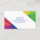 A stylish, vibrant business card featuring a colorful geometric pattern for modern professionals. It includes contact details, emphasizing bold and creative details suitable for photographers, designers, and creative industries.