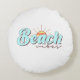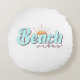 Featuring the words "Beach vibes" in sky blue bubble letters with a dark brown outline or shadow, this pillow poof captures the fun and laid-back spirit of the beach. The word "vibes" is written in lowercase dark brown cursive, adding a touch of sophistication to the design.