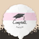 Modern and Simple Pink Congrats Graduation Balloon with a Graduate Name. Graduation party balloon with graduation cap, modern typography text Congrats and a name of the graduate - personalize with your name. The text is on a white and the cap is on pink background.