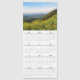 Design is composed of 2020 calendar with handwritten font and wild outdoors filled with yellow flowers and mountains.