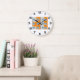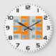 Add a pop of urban charm to your decor with this unique clock featuring a graphic of a vibrant orange and grey apartment building. The exterior design showcases a multitude of windows, bringing a contemporary and chic feel to any room. Perfect for those who appreciate modern architecture or want to add a splash of color to their home.
