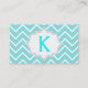 Modern aqua blue, grey, ivory chevron pattern monogram personalized business card. There is a frame with your monogram in the centre. A stylish zig zag design using the classic stripes with contemporary yet vintage look in a sense. You can change background -aqua- and monogram color choosing from over 200 colors from Zazzle color chart. Elegant, classy and sophisticated design that can be used as personal business cards or for many types of business such as Interiors, crafters, stylists.