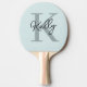 Modern Aqua Blue Monogram Script Ping Pong Paddle