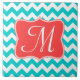 Modern Aqua Coral Chevron Zig Zag Stripe Fabric Print Pattern Monogram Initial Decorative Display Tile Personalized