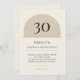 Warm neutral minimalist arch birthday invitation with modern typography. Age name date time location and RSVP are fully editable so you can customize for any 30th celebration and print or mail with ease.