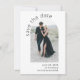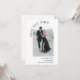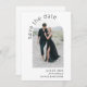 Beautiful simplicity and artistic boho style make this modern arch wedding save the date card pop with appeal. it features an arch shaped photo template on the front of the card to upload your desired photo. There is a text template on the front of the card to personalize with the bride and groom's names and planned wedding date. The back of this card has a sample message with additional details to personalize. Shown here with a plain white background, this card is available in other colors as well.