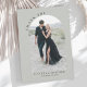 Beautiful simplicity and artistic on trend style make this modern arch wedding thank you card design pop with appeal. it features a photo template on the front of the card to upload your desired photo. There is a text template on the front of the card to personalize with the bride and groom's names and wedding date. The back of this card has a sample thank you message that you can use as written or personalize with your wording and the bride and groom's names. Show here in a pastel sage green background, this card is available in other colors as well.
