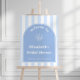 Welcome guests to your event with this stylish coastal inspired welcome sign featuring a summery blue and white stripe print background and trend arch text border. All colors (including the arch, seashell and all text) can be customized by you, as can all text colors and placements, from inside the design tool. You can also add or delete text boxes inside the design tool.