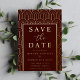 Elegant, art deco wedding save the date featuring a gold foil arch pattern with a burgundy background. Personalize the modern art deco save the dates with your names and wedding details in gold foil lettering.