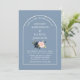 Modern Arch Dusty Blue Pink Floral Photo Wedding Invitation