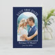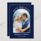 Modern Elegant Arch Photo Frame Save The Date Couple Photo Wedding Engagement Announcement Card - Blue