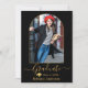 Modern Arch Photo Frame - Trendy Calligraphy Script - Photo Graduation Announcement Card - Black Background with Gold Text - Gold Graduation Cap