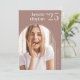 Simple and modern photo graduation announcement features a vertical or portrait oriented photo in a unique arched layout, on an earth toned clay background. The graduate's name and graduation year appear at the top, with the school name at the lower right. Add a personal message to the back, along with an additional photo.