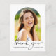Modern graduation thank you card postcard featuring the graduate's photo in an arch frame, "thank you" in an elegant script and their name and class year in simple typography. On the reverse side, add an additional poto, personalize a thank you message and add add their name in a signature-like script.
