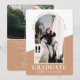 Share your pride and joy of a high school or college graduation with these modern arch photo announcement cards. Photographs and wording are simple to personalize using the template provided. This template can be customized with any details of your choice, such as party invitation info, parents' names, special honors, degree title, favorite inspirational quote, graduate's contact info, future education plans, or new job position. These elegant graduation announcement cards are a trendy and chic way to share your daughter/sons special day celebration with family and friends - Congratulations to the graduate!