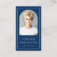 Modern, vertical, dark blue or custom color business cards with your arch shaped photo, name and title on the front, with a thin white border along the edge of the card. Customizable template fields for your contact information, social media and QR code on the back. You can change background and font colors, move and resize elements with the design tool.