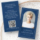 Modern arch photo thin border QR code dark blue Business Card