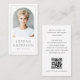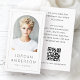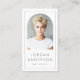 Modern, vertical, white or custom color business cards with your arch shaped photo, name and title on the front, with a thin light gray border along the edge of the card. Customizable template fields for your contact information, social media and QR code on the back. You can change background and font colors, move and resize elements with the design tool.
